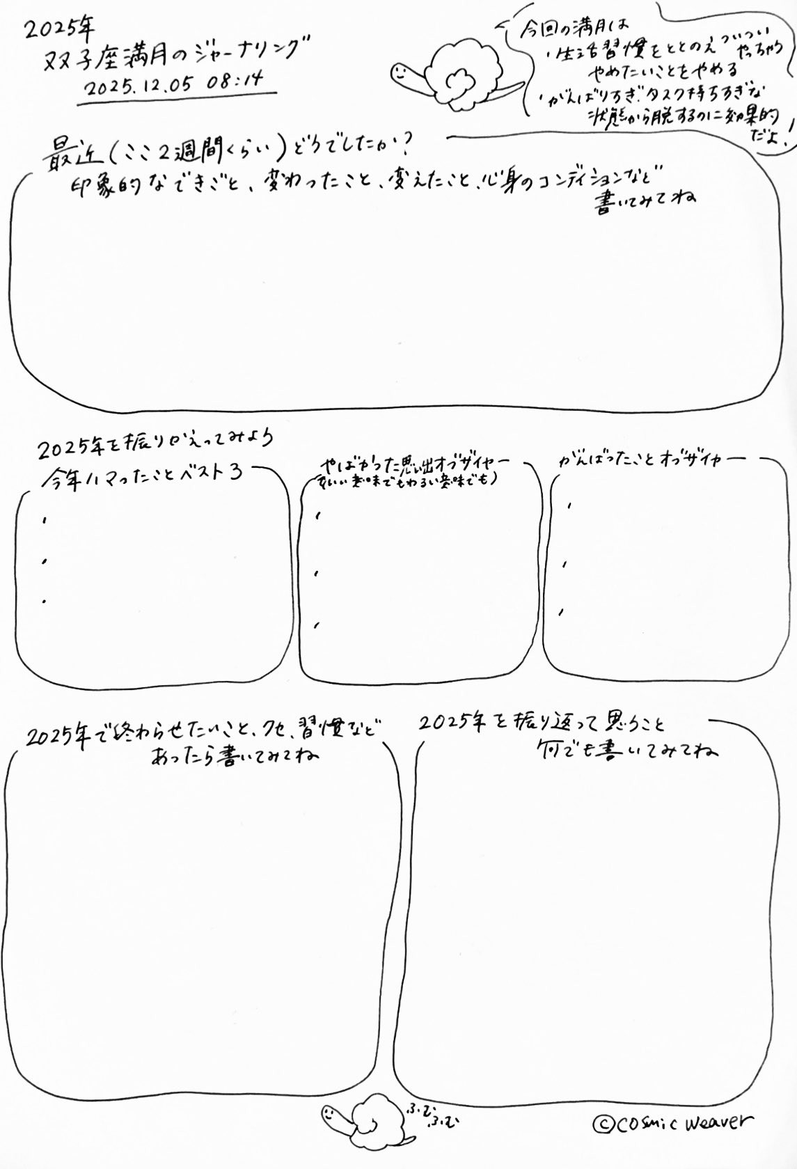 ちょっと字が小さくなってしまいましたが今回もジャーナリングシートを作りましたので、よろしければやってみてください。