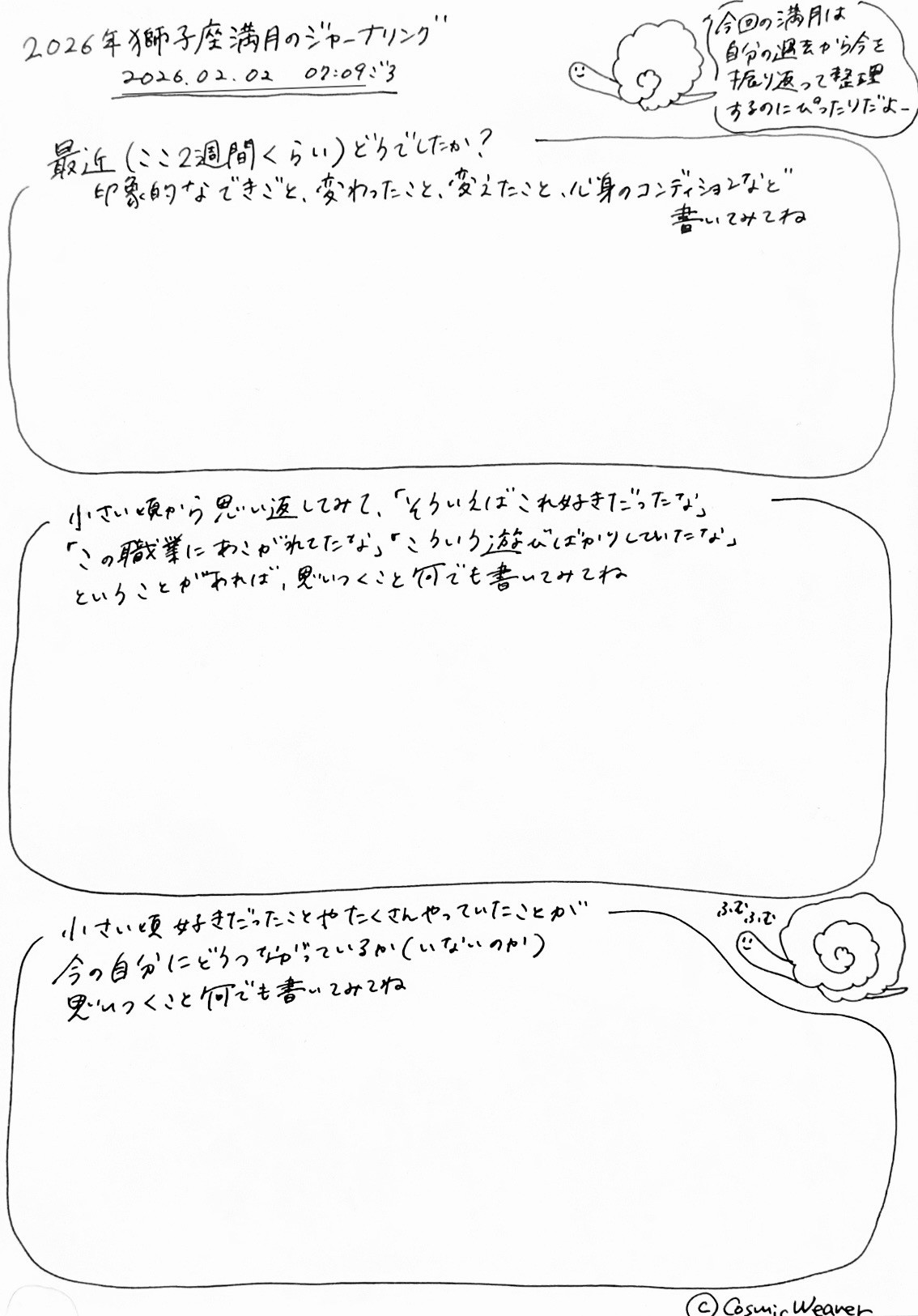 今回もジャーナリングシートを作ってみました。気が向いたらぜひやってみてください。